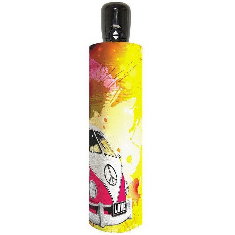- Міцна парасоля завдяки системі антивітер та помітний та яскравий принт від австрійського бренду Doppler.